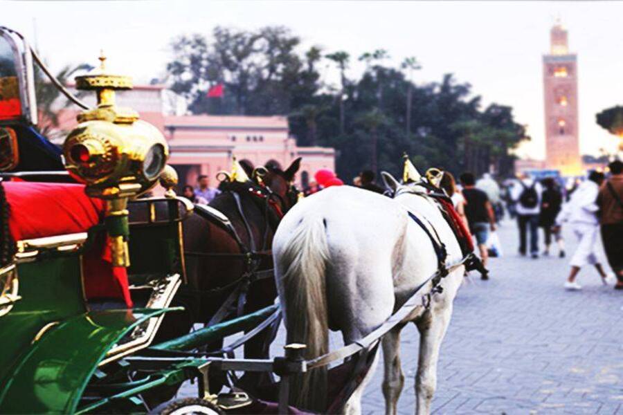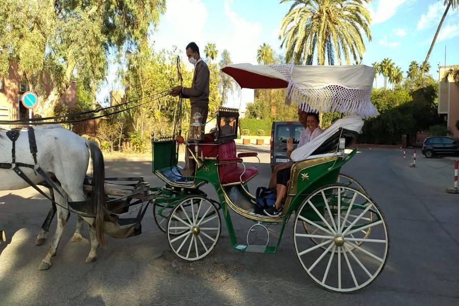 • Geniet van het moment in de paardenkoets en heb een nostalgisch uitzicht op de oude medina van Marrakech.