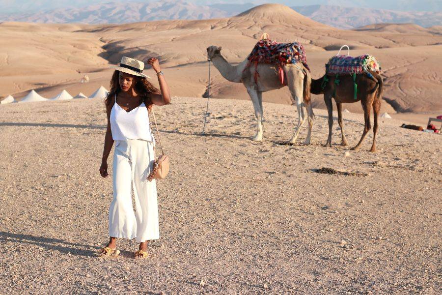• Prachtige kameelrit met de zonsondergang in de verbazingwekkende rotswoestijn van Agafay
