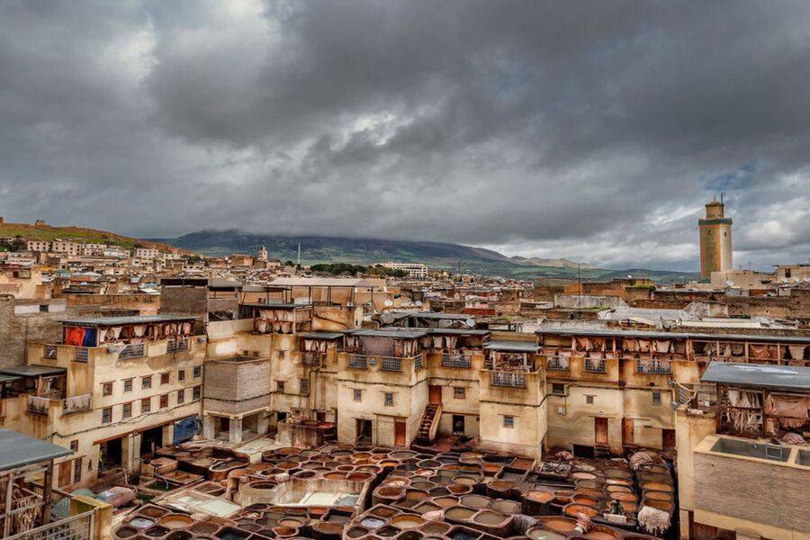 We verkennen de souk, de Karaouine-moskee en ook de eerste universiteit ter wereld. We zullen ook leerlooierijen bezoeken. We overnachten in een hotel in Medina.