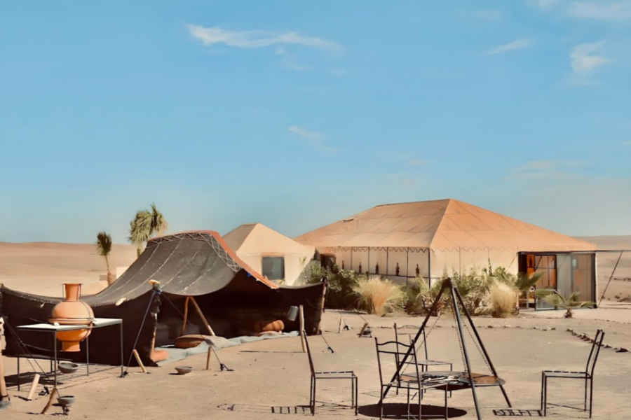 Word welkom geheten in het woestijnkamp en geniet van een overnachting in een typisch bivak.