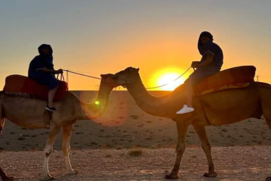 Geniet van een onvergetelijke zonsondergang in de Agafay-woestijn met kameeltrekking
