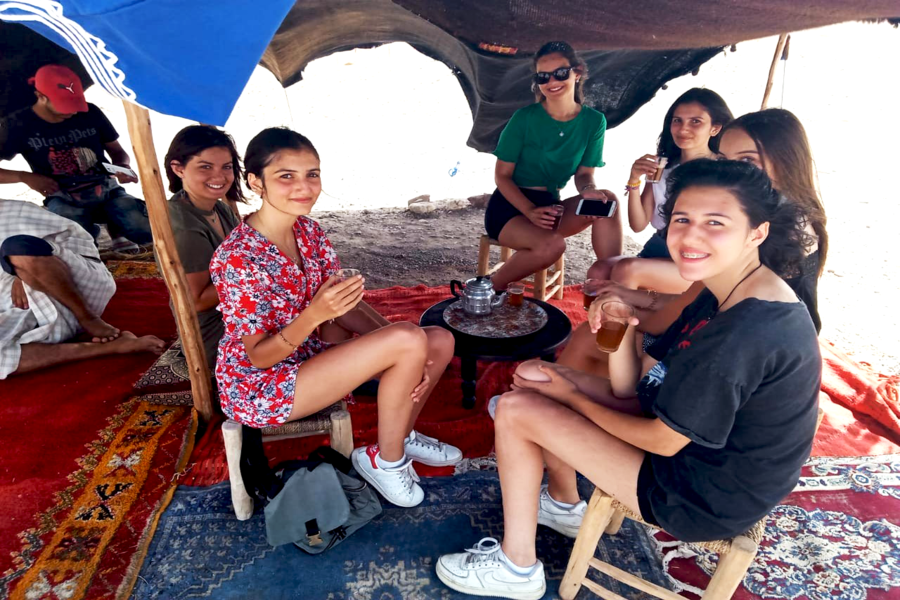 • Bekijk de charmante zonsondergang terwijl je op de kameel rijdt met de Sahara-kleding.